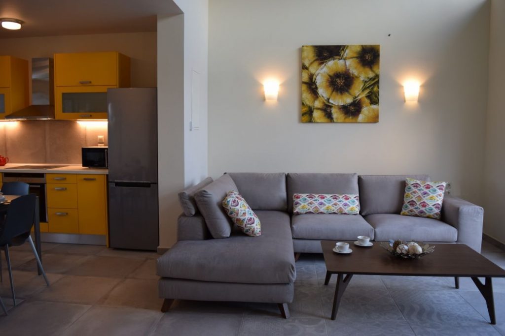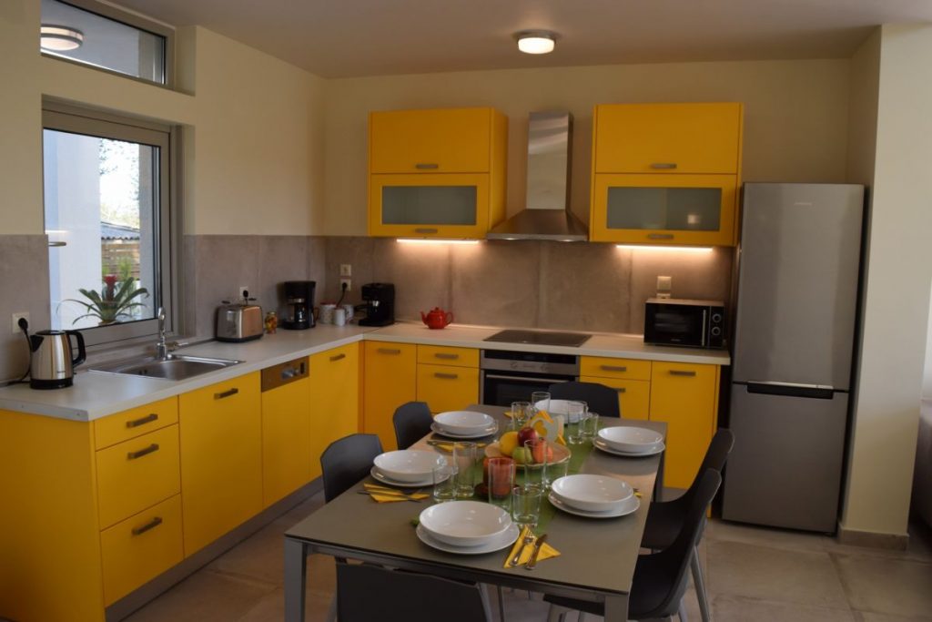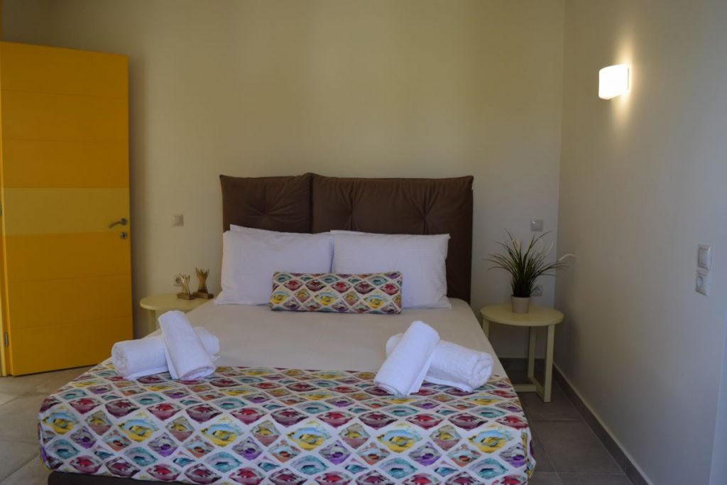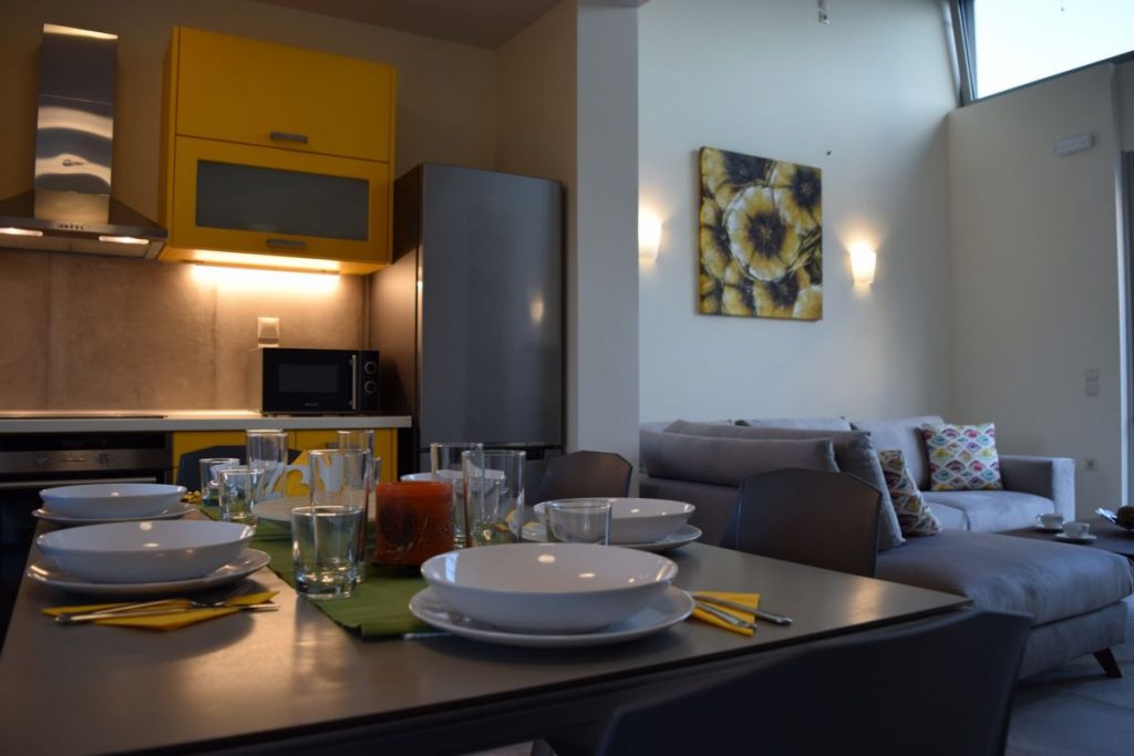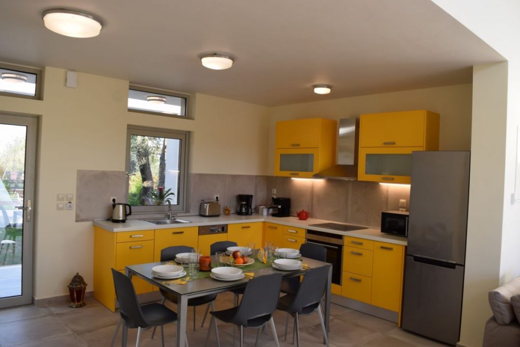 The property (100 m2) is able to accommodate 5 people. It offers 2 big bedrooms with king size beds and memory foam mattresses for an incredibly comfortable sleep. Every bedroom has an en-suite bathroom. The villa offers a fully equipped kitchen, a dining room, as well as a spacious and modern decorated living room with a sofa that easily turns into a comfortable single bed.
